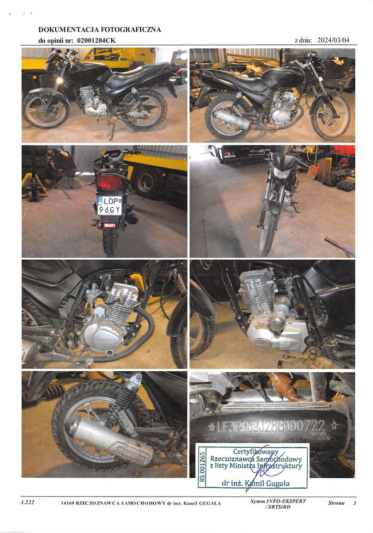 1. Motocykl marki LIFAN HL125-9J o nr rej. LOP 96GY, VIN: LF3PCJ9J28B000722: