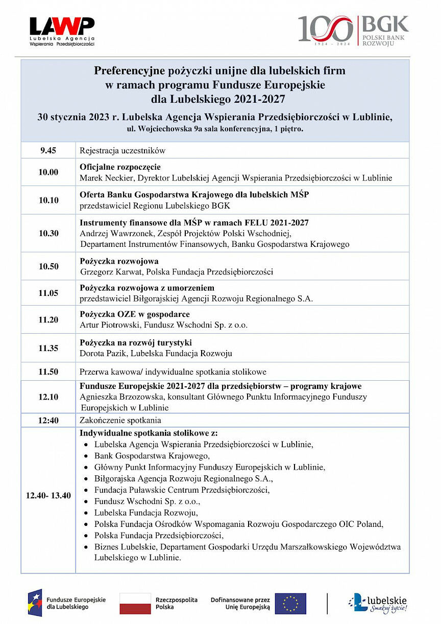 „Preferencyjne pożyczki unijne dla lubelskich firm w ramach programu Fundusze Europejskie dla Lubelskiego 2021-2027” - szkolenie 30.01.2024 r.